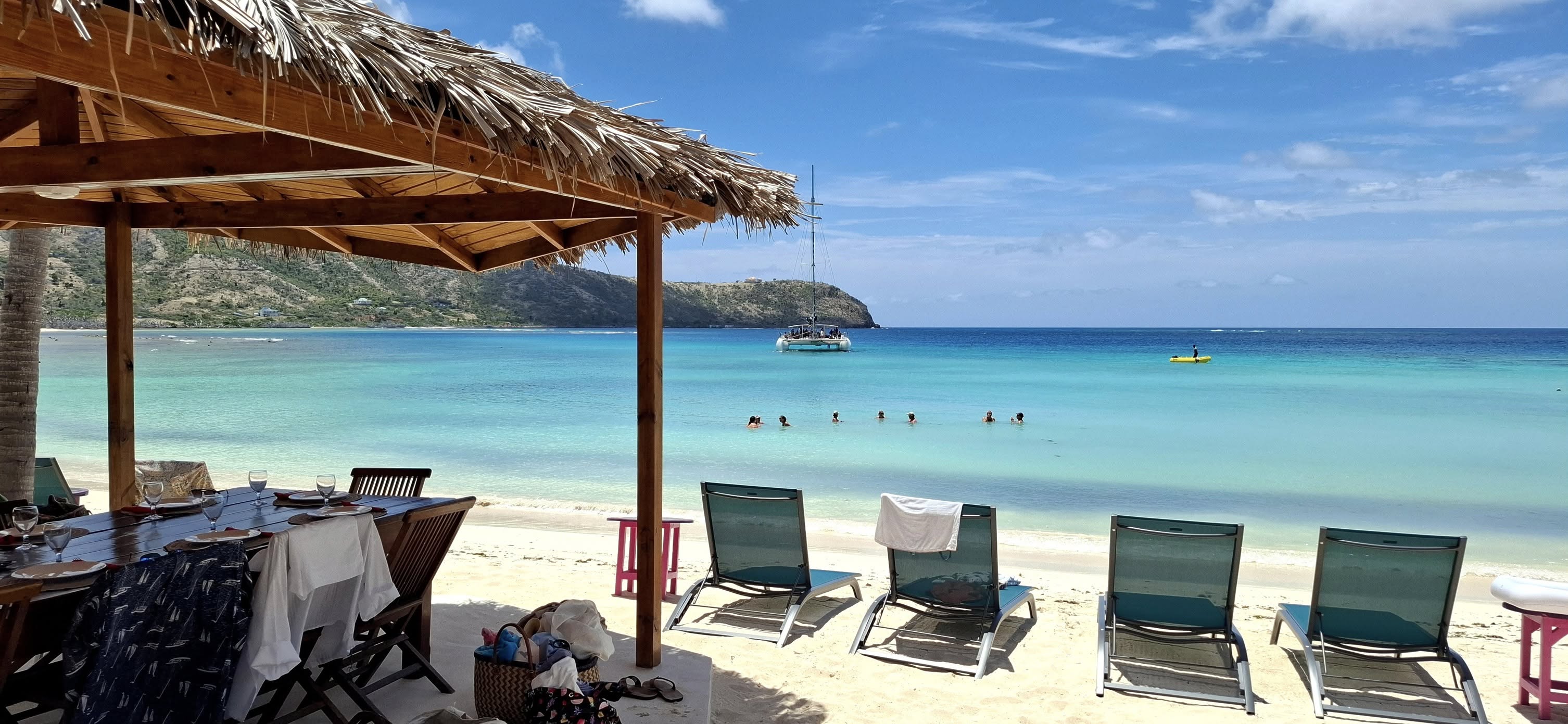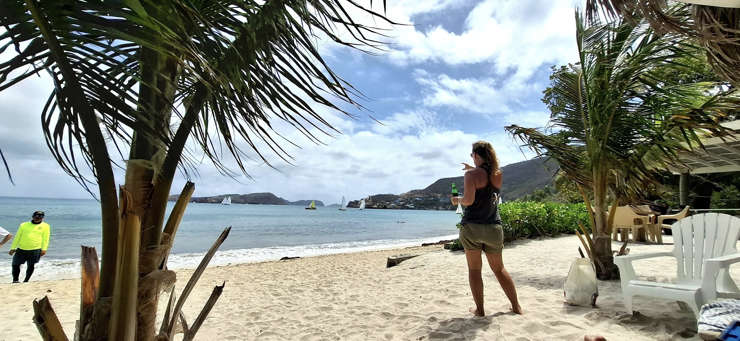 On Easter Saturday, we spent the day at Friendship Beach watching the annual sailing regatta. This event has reduced in size over recent years, returning closer to its roots as a local event that focusses on tradition “double ender” races. In typical Caribbean fashion, the start time drifted late by a mere three hours (!), but we were happy to take advantage of the refreshments from the “Sand Bar” while we waited – hic!
